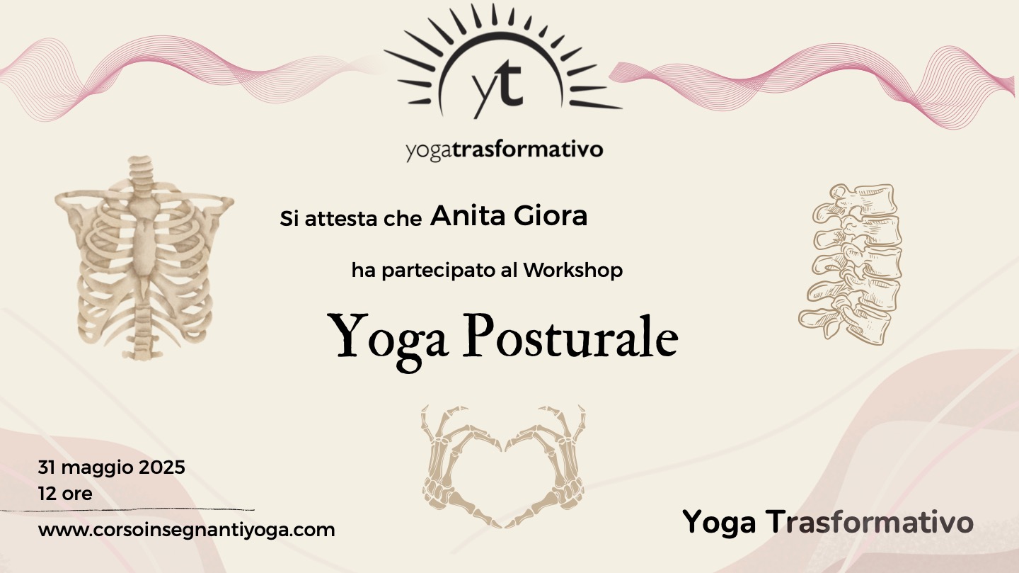 Ho trovato la scuola per insegnanti “Yoga Trasformativo” e nonostante il mio interesse fosse da semplice praticante mi sono iscritta. Marcella e Cristiano con la loro esperienza e le ampie conoscenze in materia, sono stati in grado di rispondere a moltissime mie domande, aiutarmi a superare diverse difficoltà e farmi scoprire portata per l’insegnamento. Dopo aver terminato il primo percorso di studio ho iniziato ad offrire lezioni private, imparando così a capire cosa potesse servire alla persona, adeguando ogni incontro alle sue esigenze. Ho proseguito con il secondo livello di studi, conseguendo il diploma da 500 ore di formazione di asana, respirazione e meditazione, e poi con un terzo percorso specifico per lo yoga di tipo Yin in connessione con la Medicina Tradizionale Cinese. Nel frattempo, ho iniziato a tenere lezioni di gruppo, potendo così mettere in pratica ciò che stavo imparando, quale grande valore aggiunto. Ora quei gruppi continuano a seguire le mie lezioni donandomi profonda gioia e gratitudine.