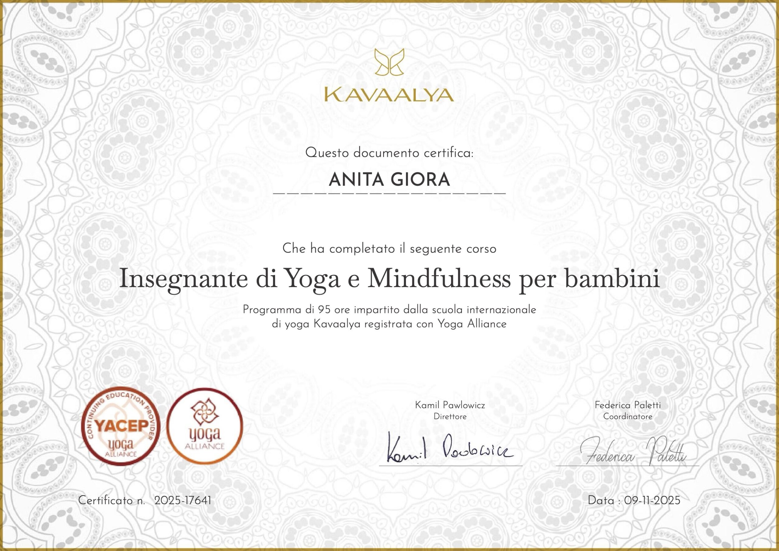 Incontro lo Yoga per ritrovare il mio respiro, grazie a meditazione e pratica fisica, durante un periodo impegnativo della mia vita lavorativa. A distanza di anni e attraverso varie esperienze comprendo il significato di Yoga quale unione di mente, corpo e spirito. Ed ecco sentirmi me stessa in questa disciplina completa e scoprirmi appassionata insegnante, dopo una formazione professionale riconosciuta, che proseguo con approfondimenti sempre più coinvolgenti.